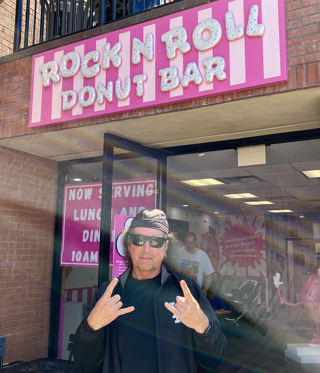 And here's a shot outside a donut shop where, incredibly, ALL the donuts are VEGAN... but they don't advertise them as such.