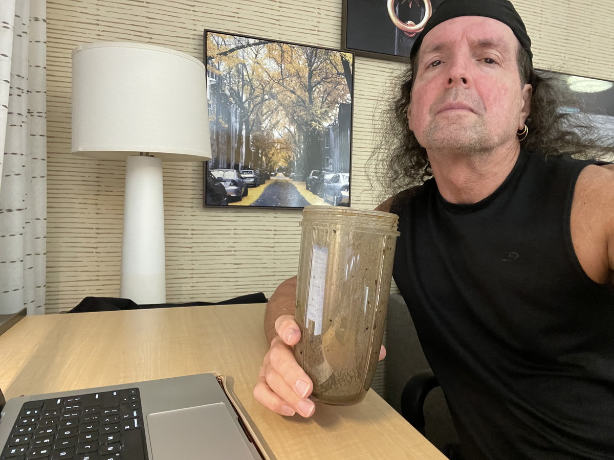 Out here with Lita Ford and company—with a day off at a hotel in Rapid City, South Dakota—finishing up my daily Dragon Dirt smoothie. Just played the infamous Sturgis bike rally last night. It's the largest of its kind in the world, and this would have to be the seventh or eighth time I've played it with Lita. Always an adventure!