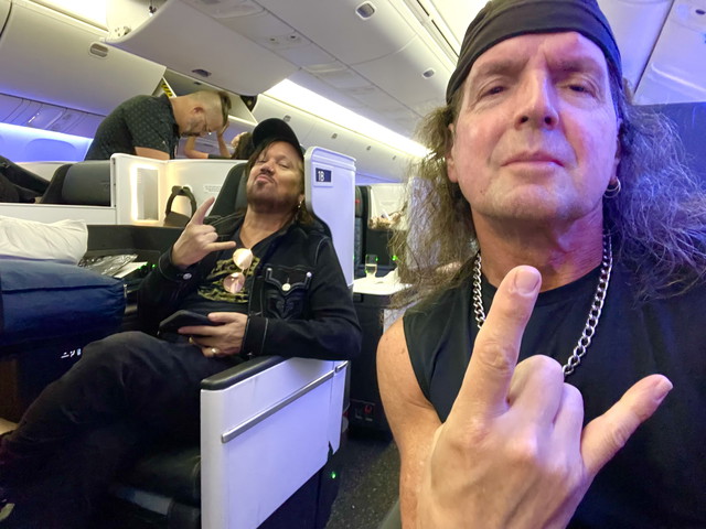 Hey kids, coming at ya from 35.000 feet, heading back across the pond for a couple weeks of shows with Lita Ford and crew.